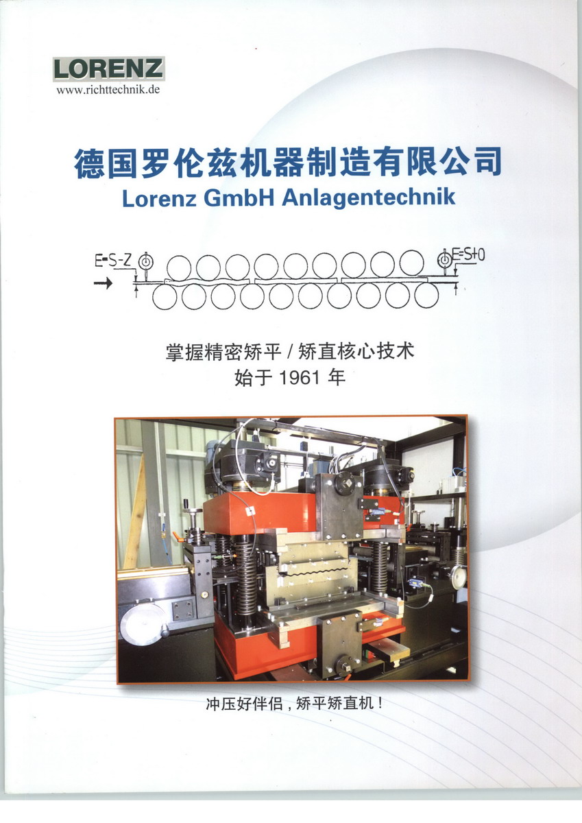 德國(guó)羅倫茲?rùn)C(jī)器制造有限公司由H. Lorenz先生創(chuàng)立,專業(yè)生產(chǎn)19/21輥精密矯平設(shè)備, 9輥矯直裝置, 開卷機(jī)和收卷機(jī), 電動(dòng)輥喂料器和橫向零件進(jìn)給裝置. 所有設(shè)備所需電氣,氣動(dòng)和液壓控制裝置也有我們自己的特點(diǎn). 是矯平矯直技術(shù)的創(chuàng)始人.公司擁有50多年矯平設(shè)備生產(chǎn)和研發(fā)經(jīng)驗(yàn). 從1961年開始,H.Lorenz先生就研發(fā)板材矯平技術(shù), 并將此技術(shù)先后介紹給兩家德國(guó)公司, 使這兩家公司開始了矯平設(shè)備的生產(chǎn)。