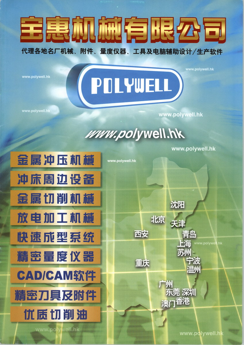 寶惠機(jī)械有限公司成立于一九九零年,主要代理機(jī)械業(yè)務(wù)。 為配合本地工業(yè)對高質(zhì)素高精度機(jī)床產(chǎn)品的要求, 公司從世界各地引進(jìn)各種精良電腦數(shù)控機(jī)械,包括模具設(shè)備 (如加工中心、火花機(jī)、線切割機(jī)、磨床等等)、鈑金設(shè)備 (激光切割機(jī)、液壓轉(zhuǎn)塔沖床、液壓彎板機(jī)等等)、車床設(shè)備 (車削中心 、傳統(tǒng)車床等等) 及特殊機(jī)械設(shè)備 (齒輪加工機(jī)、快速成型系統(tǒng)等等)。