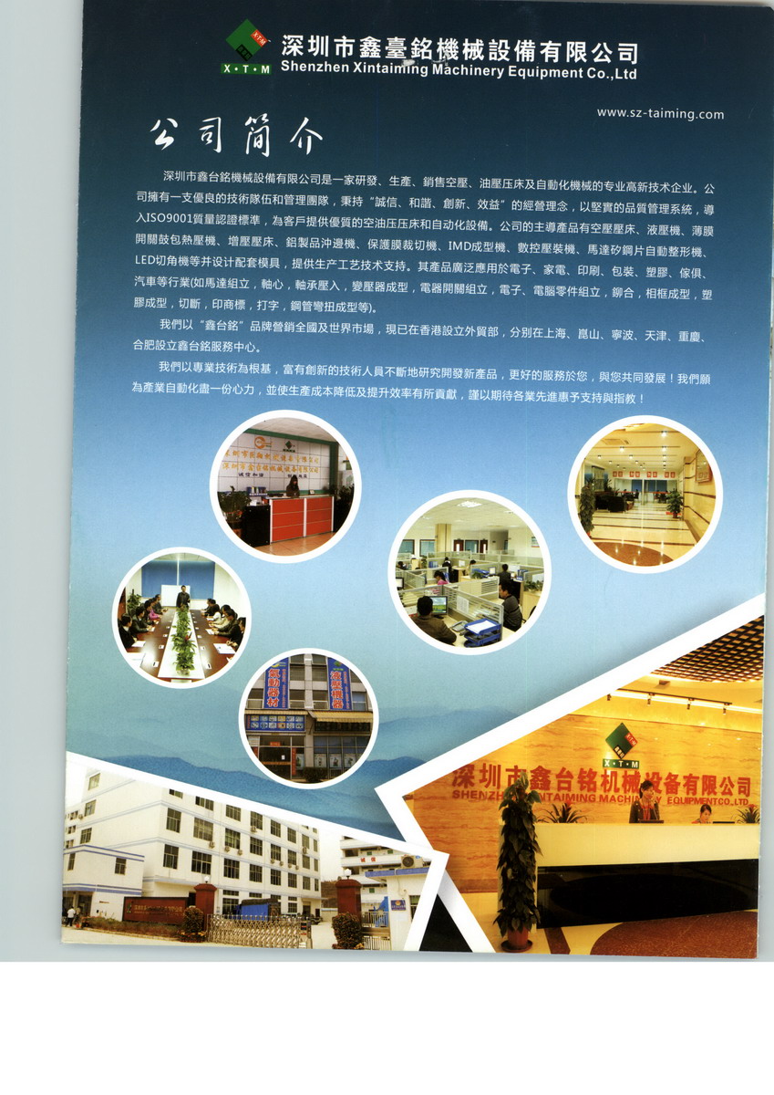 鑫臺銘的產(chǎn)品一直專注于智能壓裝裝備領(lǐng)域,隨著幾年來大力發(fā)展與研發(fā),開發(fā)出有自己的核心技術(shù)且在國內(nèi)處于先進地位的產(chǎn)品:液壓機,精密伺服電子壓力機,數(shù)控液壓壓裝機, IMD熱壓成型機,氣動元件,全自動手機輔料貼標(biāo)機(自動化環(huán)形線),壓鑄周邊自動化設(shè)備,汽車P檔測試機,一體式電感全自動成型機,通用四軸、六軸機床工業(yè)機器人等標(biāo)準(zhǔn)及非標(biāo)機械,并可配套模具,提供生產(chǎn)技術(shù)支持。產(chǎn)品廣泛應(yīng)用于電子、電器、汽配、機電、壓鑄、熱壓整型、智能化壓裝、科研單位等行業(yè)。