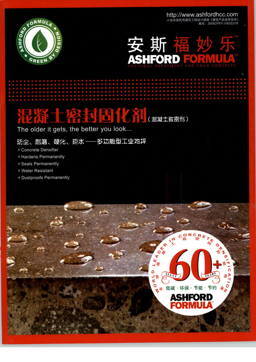 來自美國少有的安斯福妙樂混凝土密封固化劑,是一種無色.無味.無毒的透明液體密封劑。通過強力有效的滲透至混凝土5mm---8mm深度和混凝土中的游離子發(fā)生化學反應(yīng),使其成分固化成一堅固實體,從而得到一個致密的整體,有效地提高了地坪的強度.密度.耐磨性,永久性無塵的地坪。經(jīng)過機械竣光后的混凝土地面使用安斯福妙樂1---3月后會出現(xiàn)打蠟般的光澤,硬度隨著時間的增加而增強,是原地面強度的3倍以上,而且以后的使用無需打蠟維護,為你節(jié)約大量的維護費用。